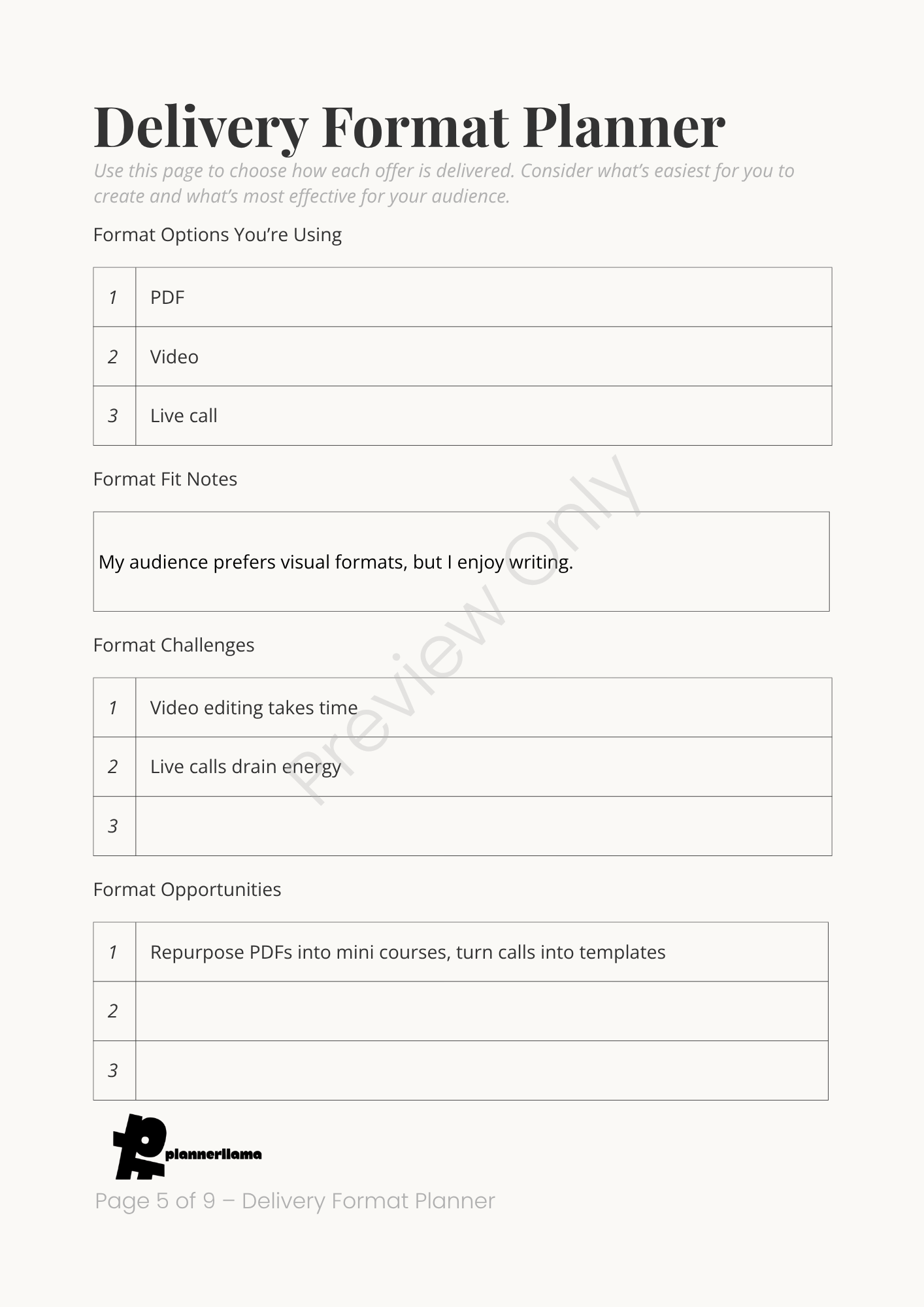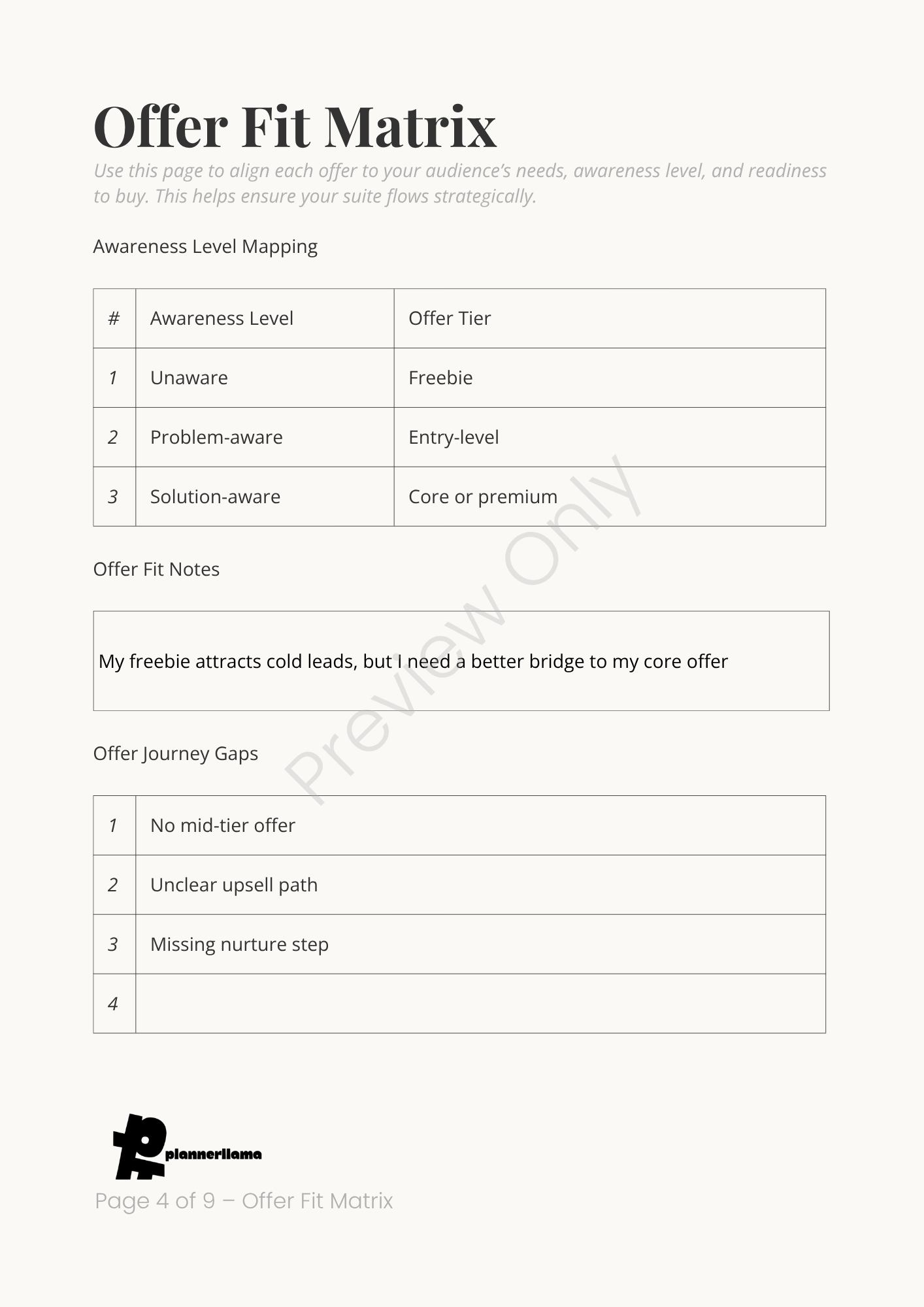 Plannerllama’s Offer Suite Planner is the eighth module in our 10-part Business Plan Planner system designed for digital entrepreneurs, coaches, and creators who want to build a cohesive, customer-aligned offer suite.